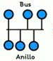 - Una topología de bus circular usa un solo cable backbone que debe terminarse en ambos extremos. Todos los hosts se conectan directamente a este backbone.